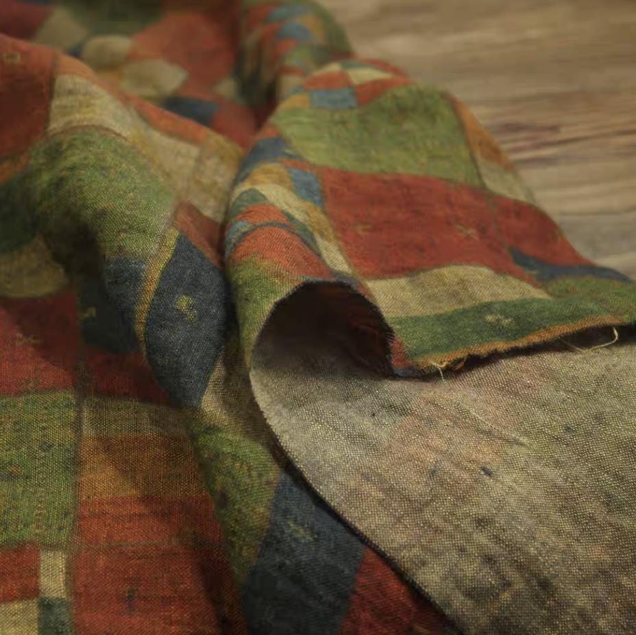 Print floral linen fabric by the yard