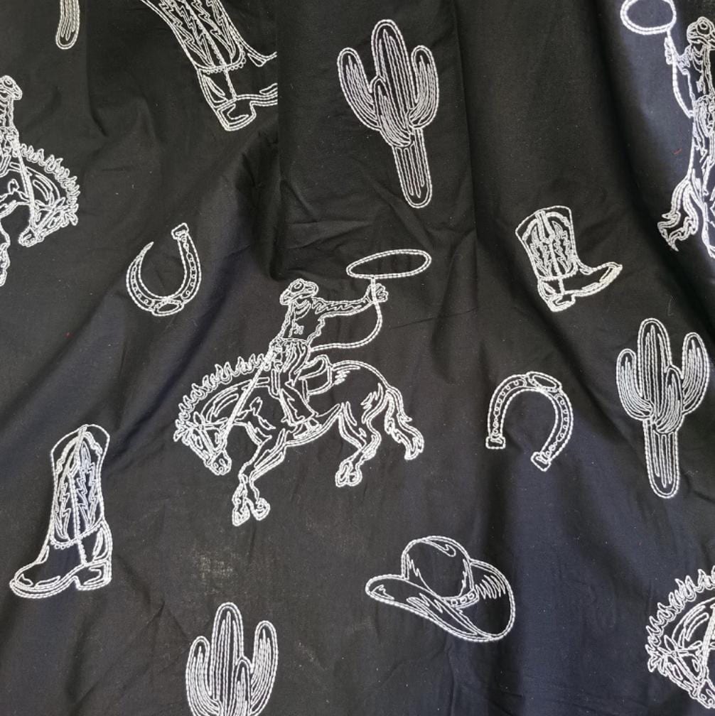Black Embroidery cotton fabric by the yard