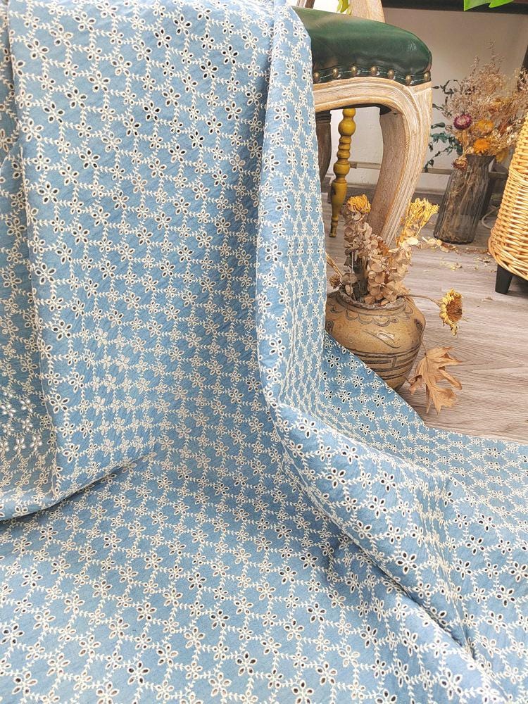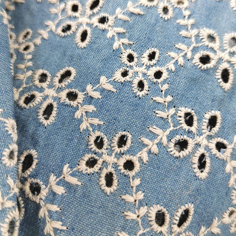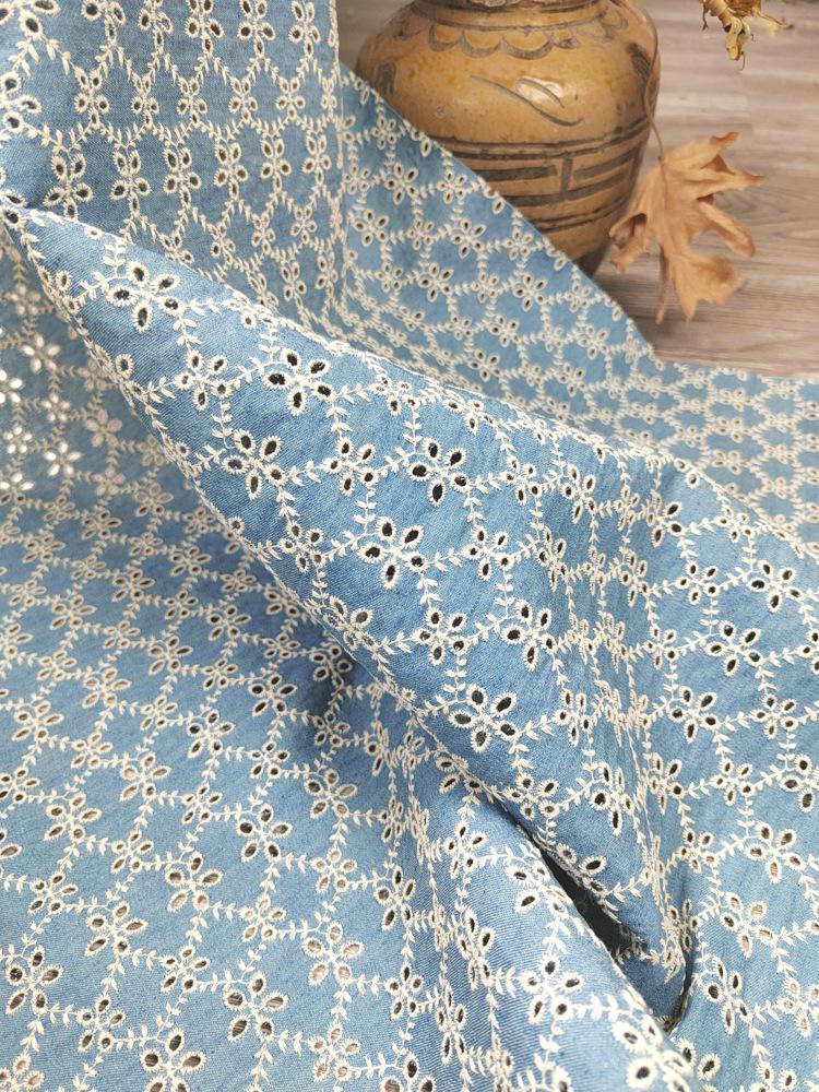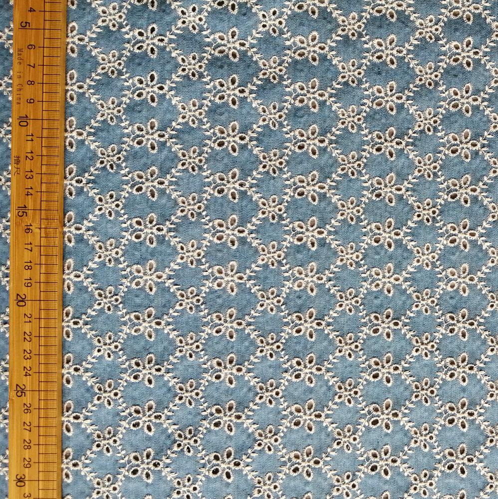 Denim Cotton Embroidery fabric, Flowers Embroidery Fabric, Cutout fabric Sold by Meter