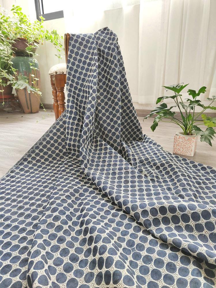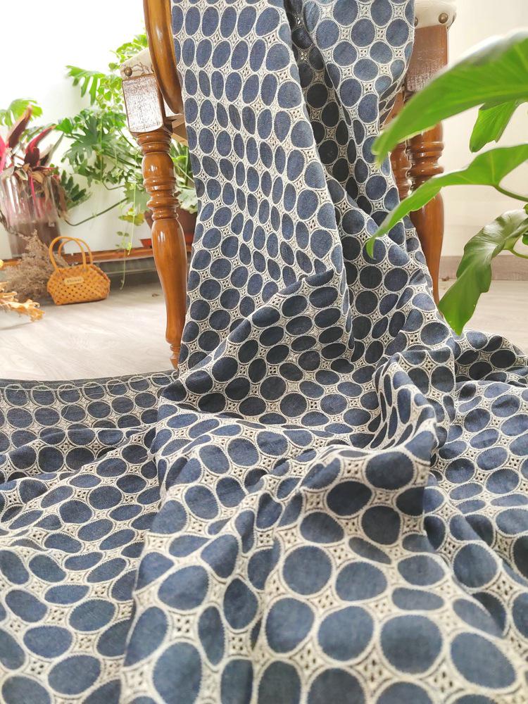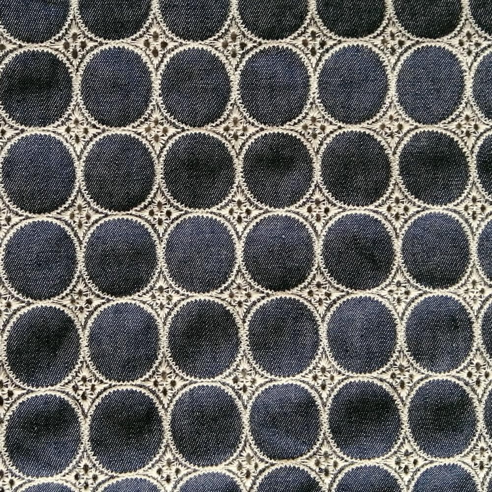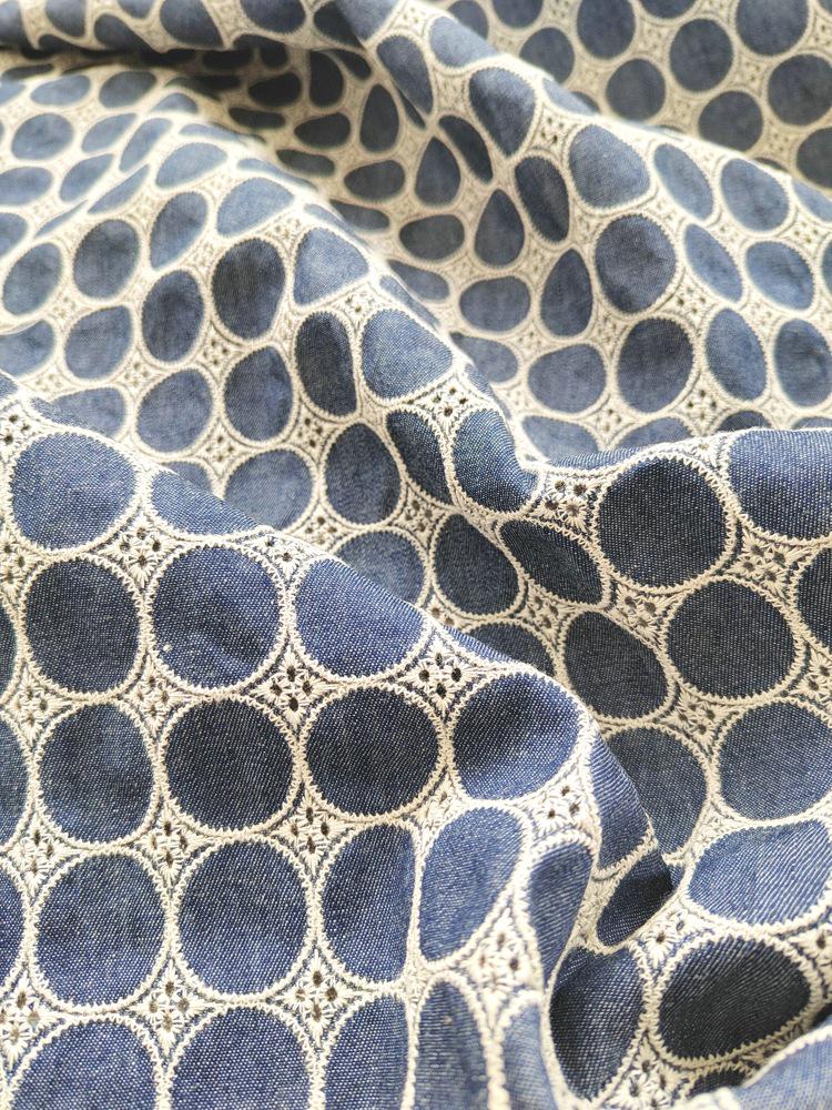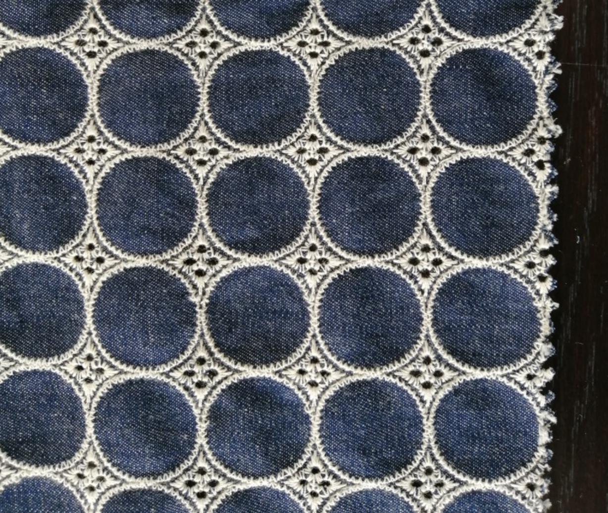 Denim Cotton Embroidery fabric, Polka dots Embroidery Fabric, Cutout fabric Sold by Meter