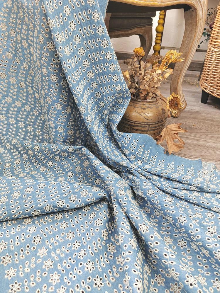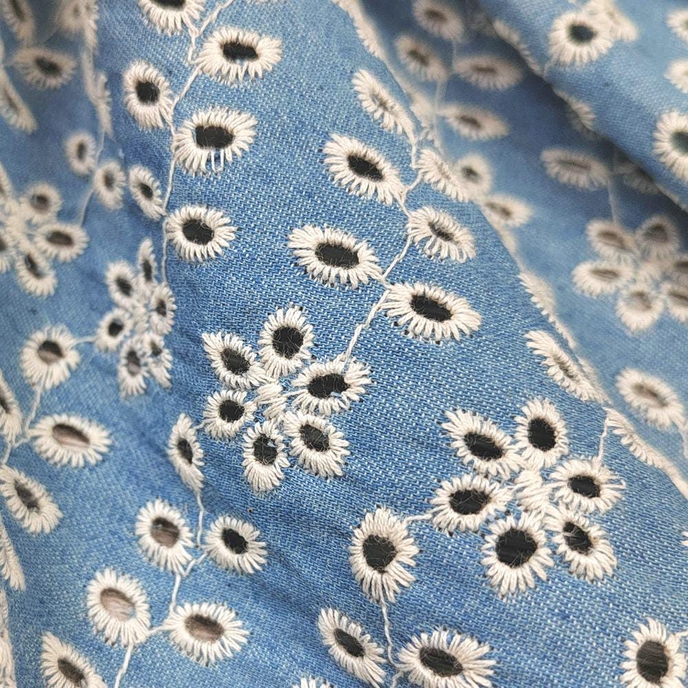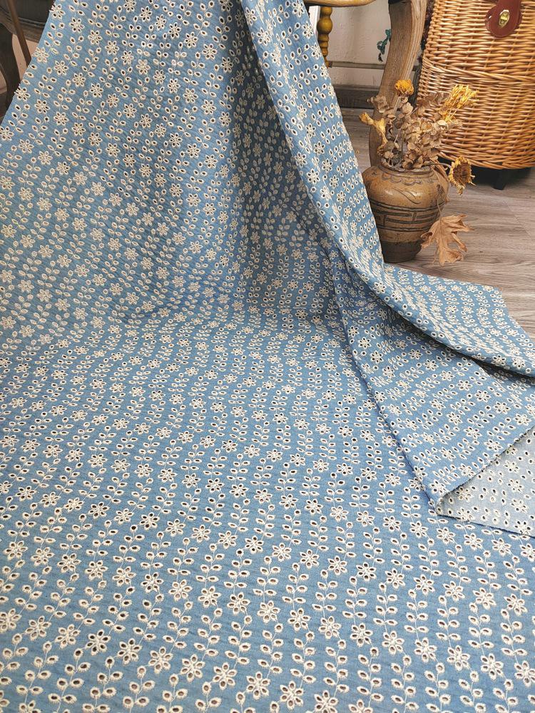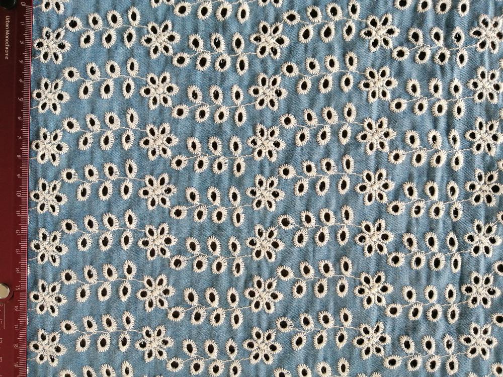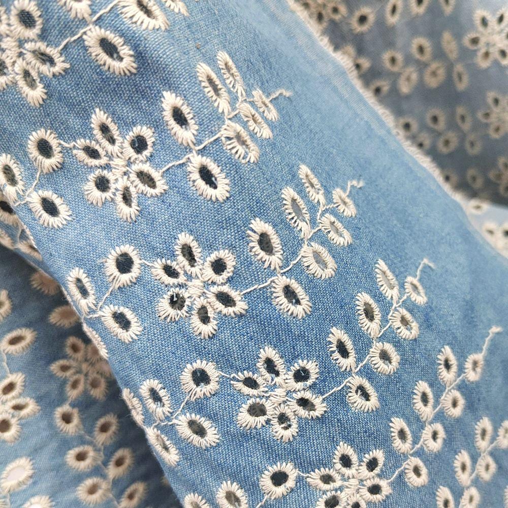 Denim Cotton Embroidery fabric, Flowers Embroidery Fabric, Cutout fabric Sold by Meter