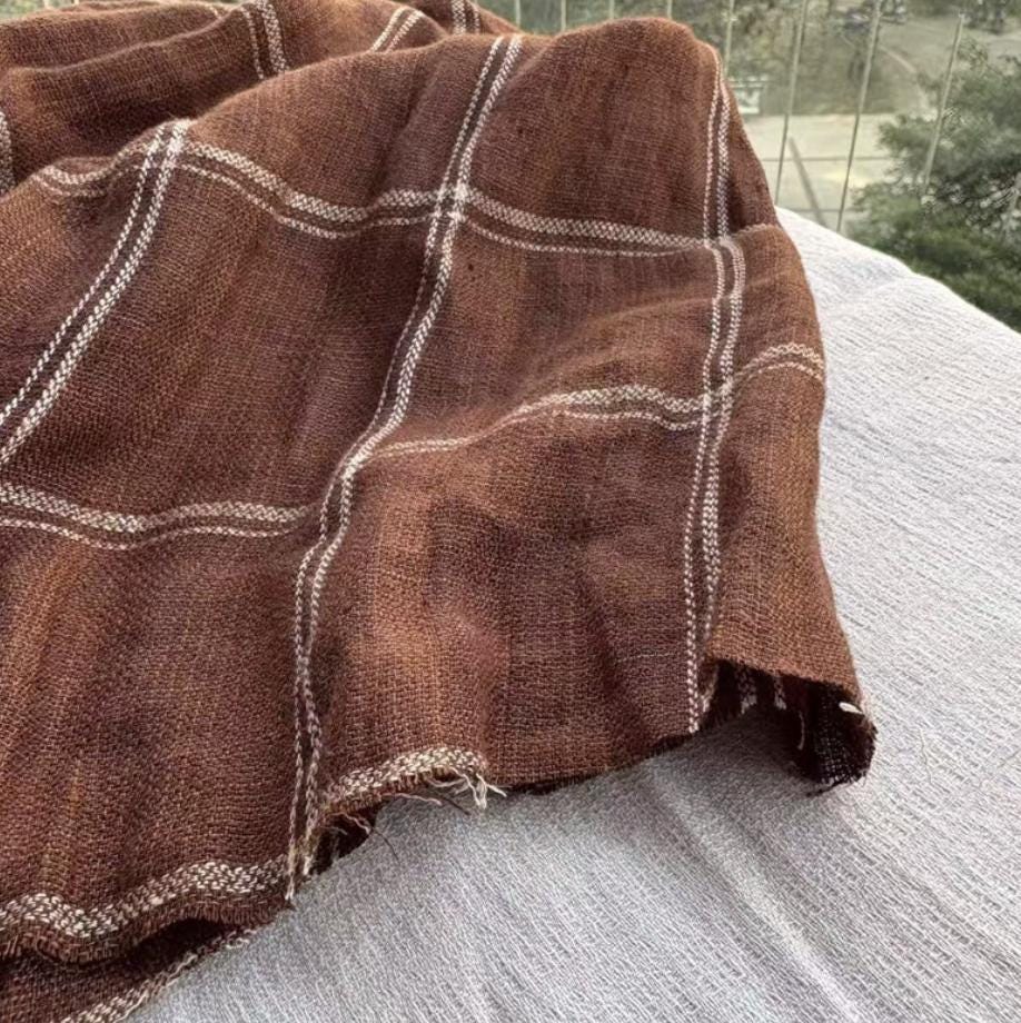 Plaid linen fabric by the yard