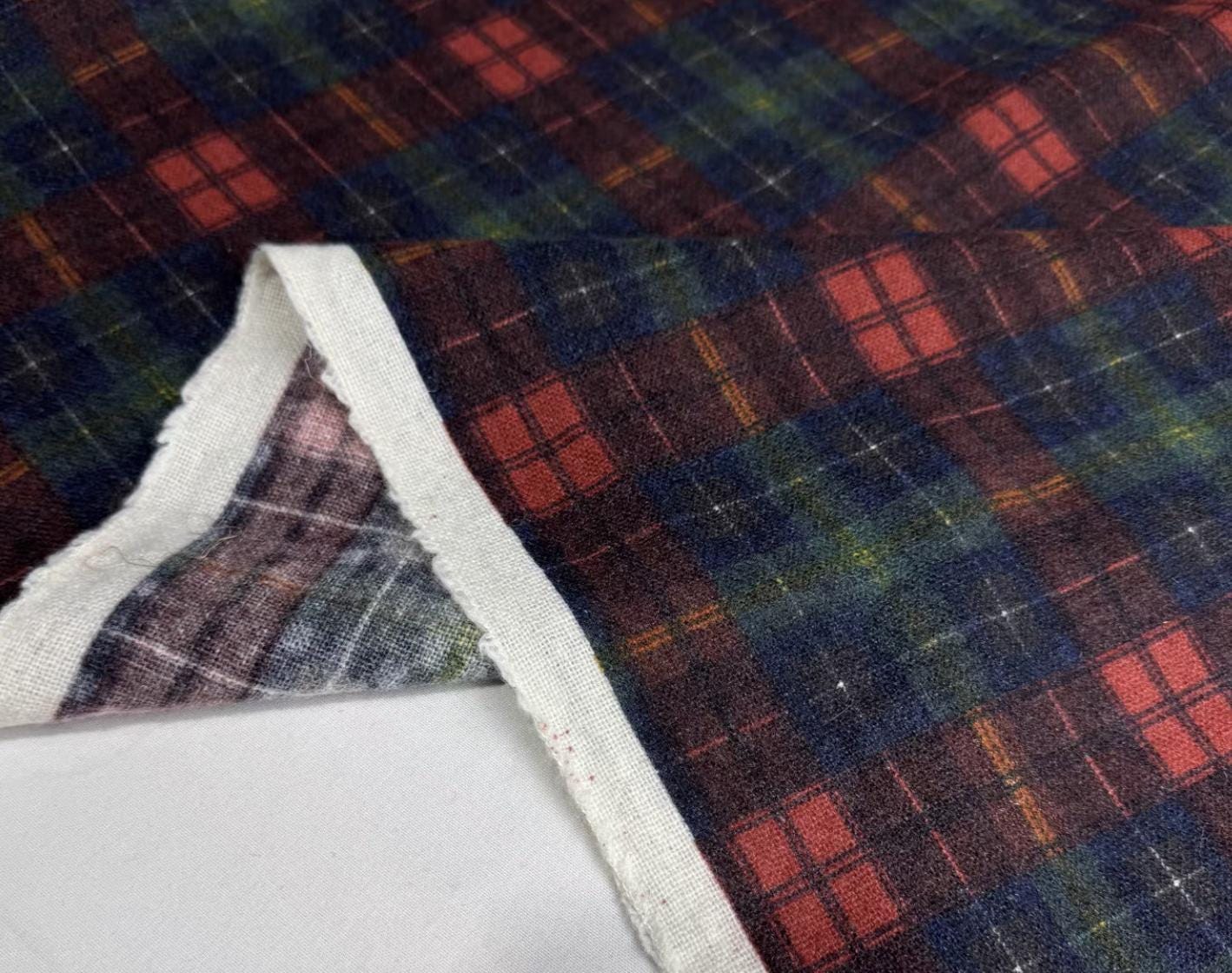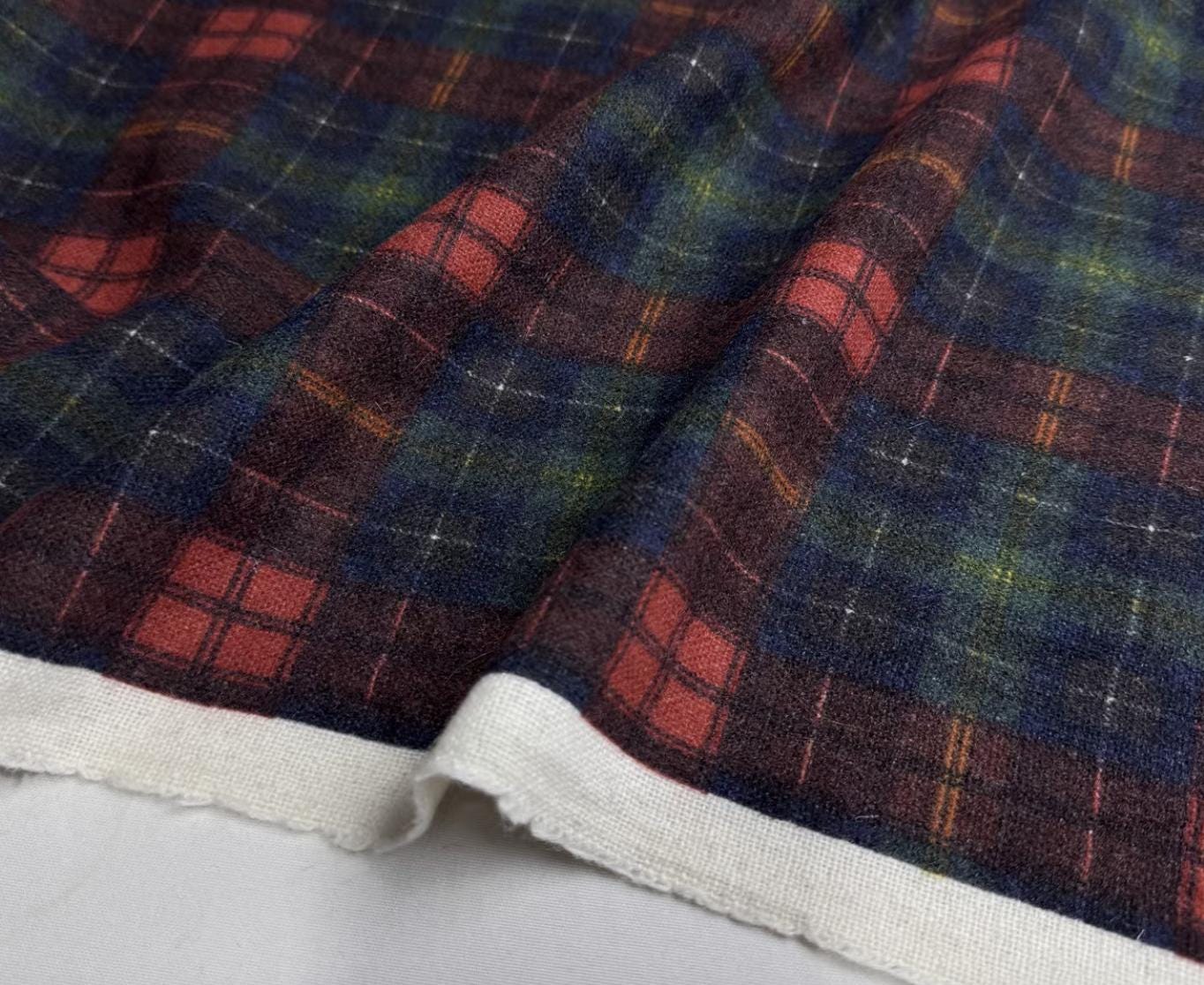 Plaid wool fabric by the yard