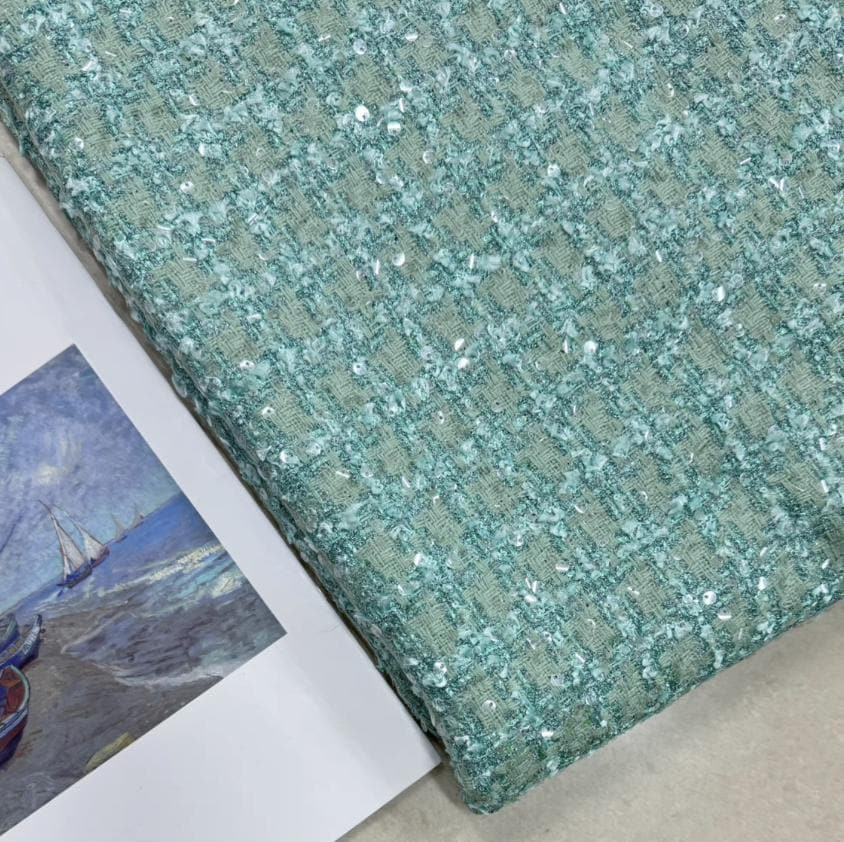 Sequins Tweed wool fabric by the yard