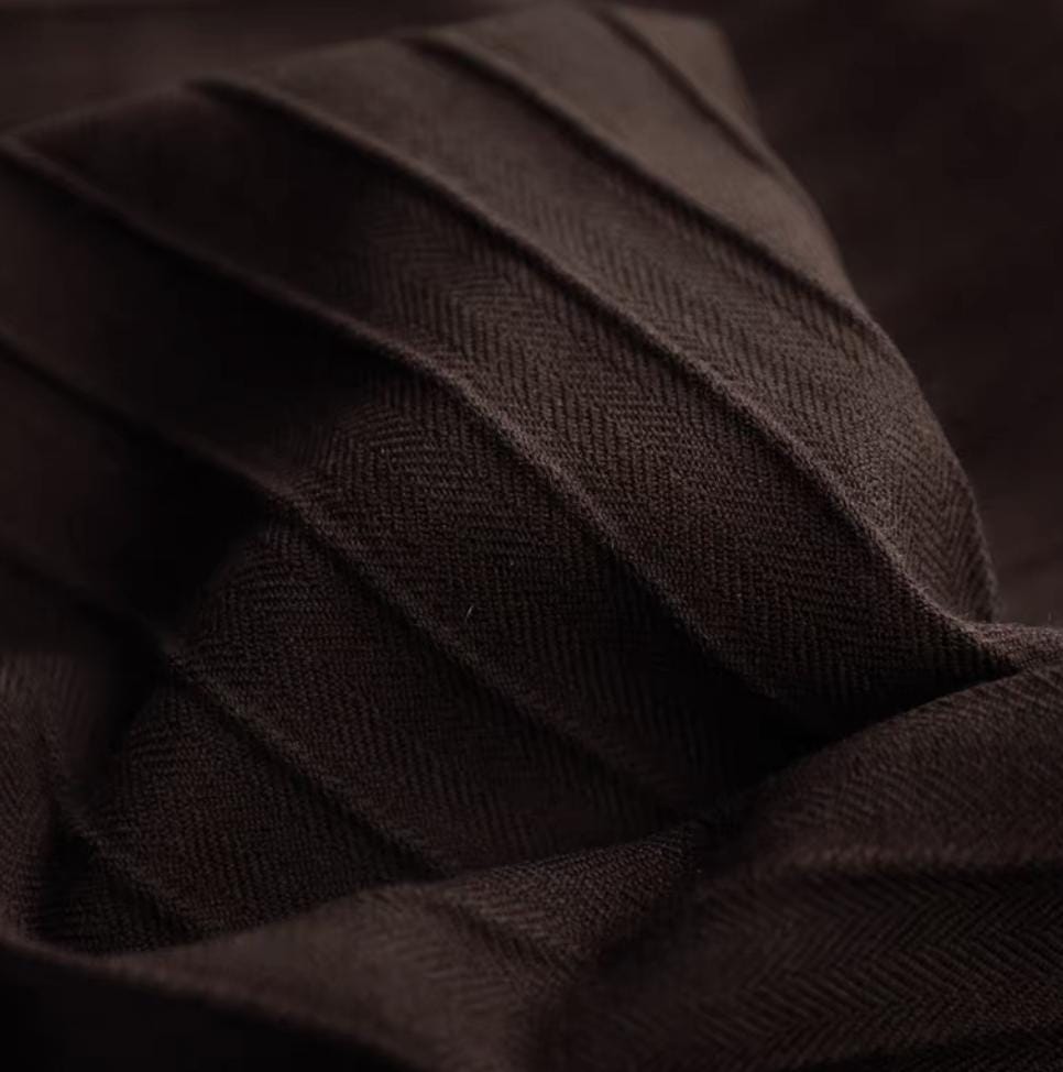 2. Wool/Alpaca/Cashmere (especially knitted): Minor snags, small blemishes, natural slubs, slight yarn joins, minor pilling tendency, loose fleece, slight color neps, scattered loose threads. It is completely normal for these minor imperfections to be concentrated on the back, a common industry phenomenon that is by no means a quality issue. During production, priority is given to ensuring the smoothness and neatness of the front side—the key display surface. Minor flaws generated during weaving and finishing processes naturally gather on the back or non-front areas, and these parts will be fully concealed after sewing, which neither affects the appearance of the finished product nor impairs the fabric's core performance. For this reason, such minor backside imperfections are an inherent characteristic of natural fiber fabrics and not covered by return or exchange policies.