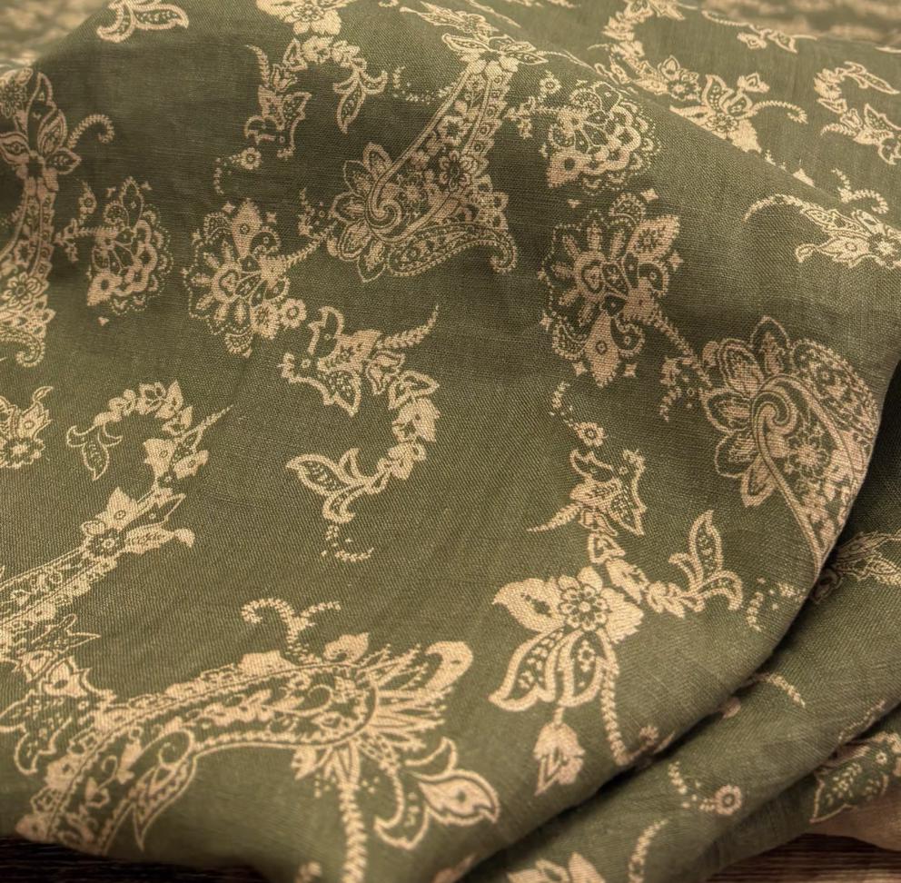 Print floral linen fabric by the yard