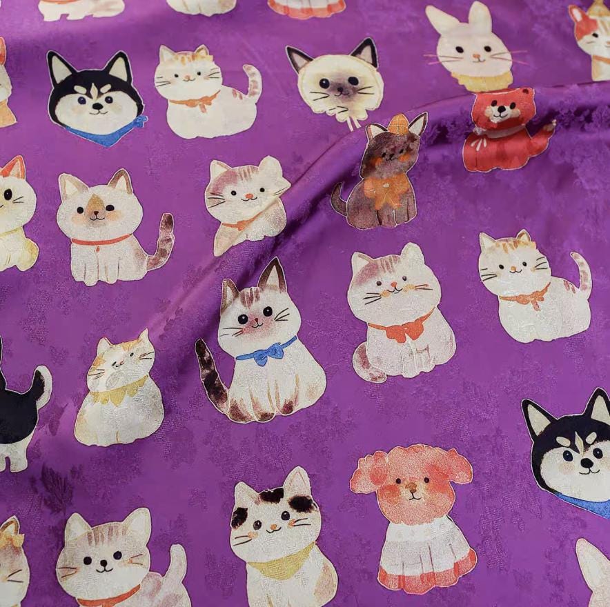 Cats and Dogs Jacquard viscose fabric by the yard
