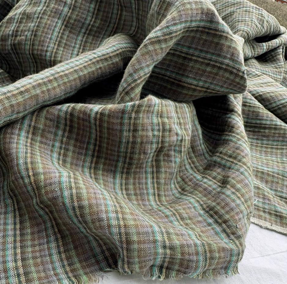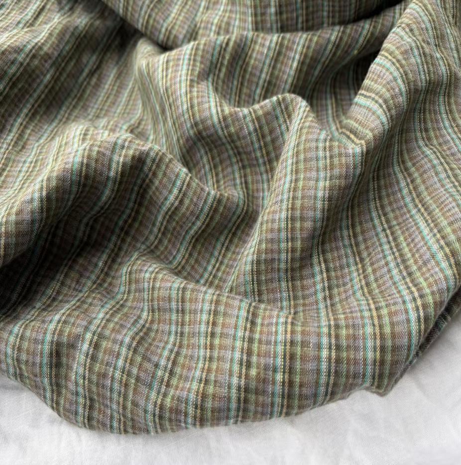 Plaid linen fabric by the yard